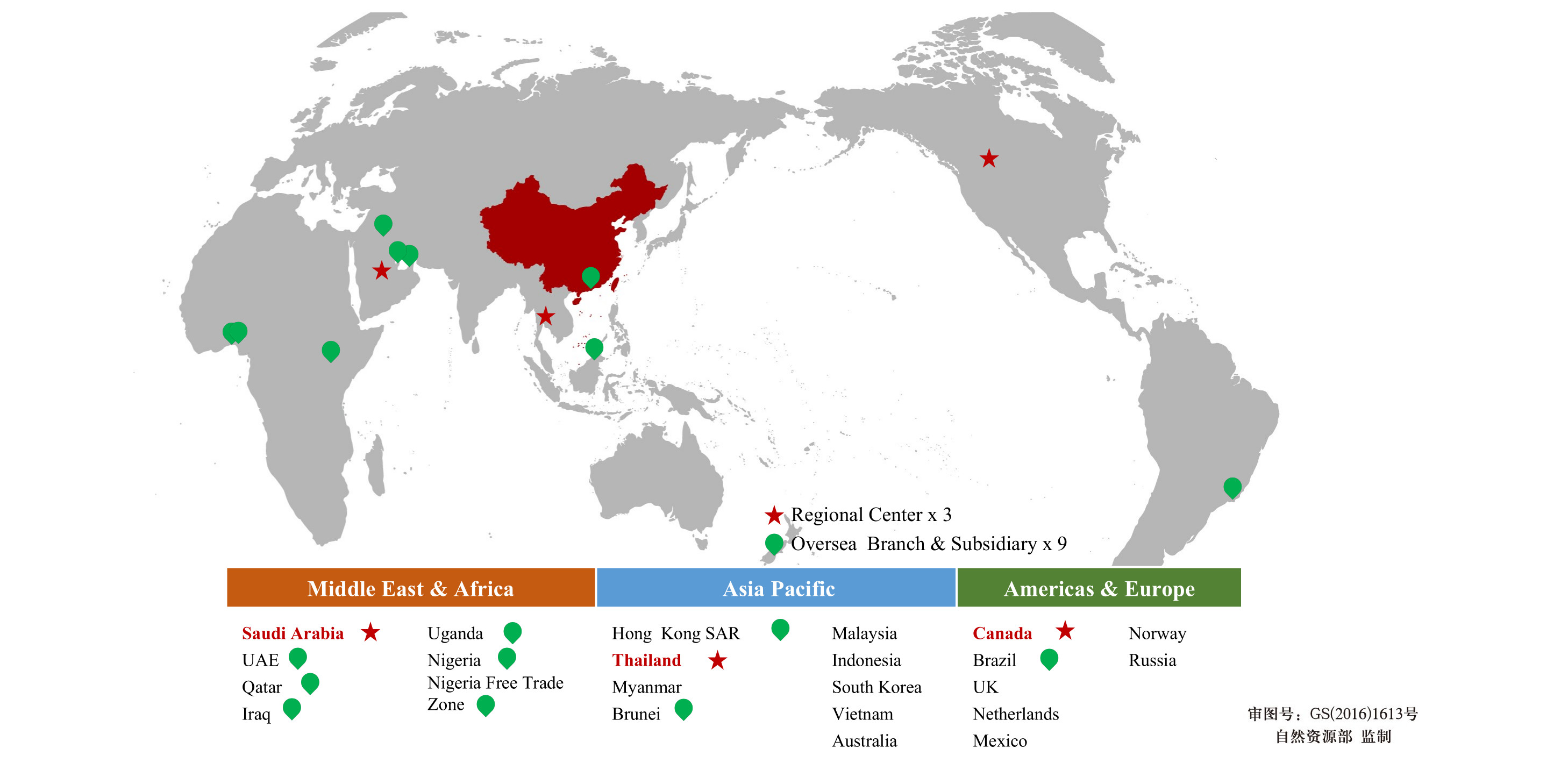 COOEC also set up 3 Regional Centers at Asia Pacific, Americas & Europe, Middle East & Africa, and 9 Oversea Subsidiaries and Branches.