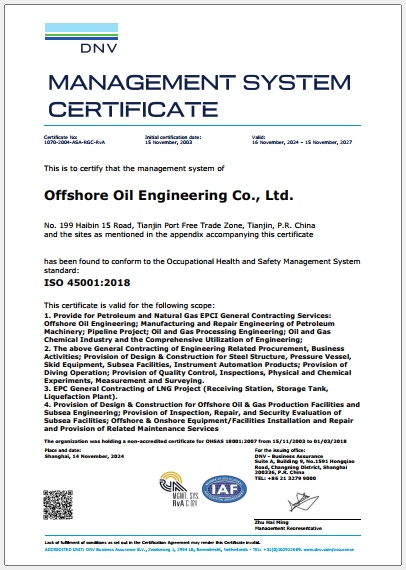 COOEC?is committed to fulfilling its social responsibilities?and upholding a systematic approach to management. We have?established an internationally certified QHSE (Quality, Health,?Safety, and Environmental) management system that prioritizes?risk control, propelling our QHSE?performance to the forefront of?the industry globally.?